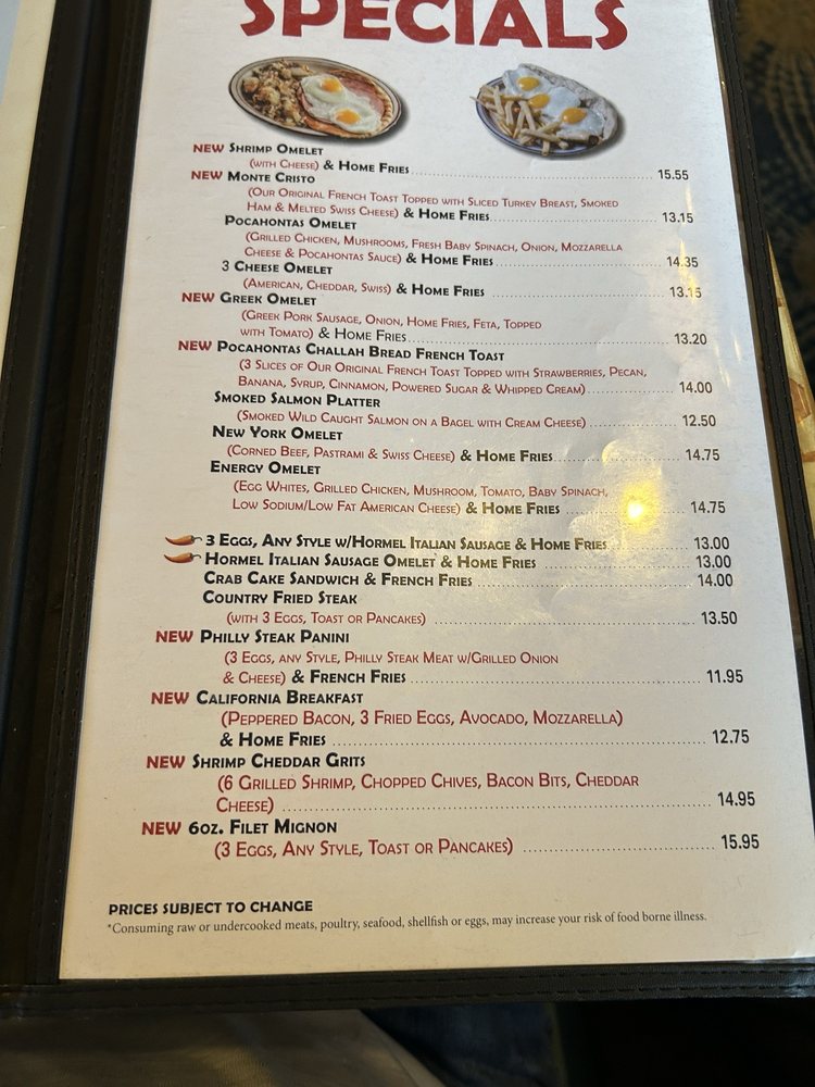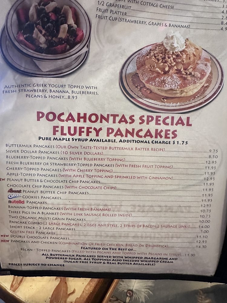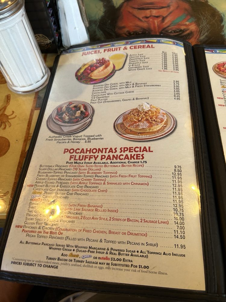 Welcome to Pocahontas Pancake House! Nestled in the vibrant heart of Virginia Beach, this bustling breakfast and brunch spot is a haven for food lovers. The menu is a delightful blend of classic and innovative dishes, focusing primarily on pancakes and hearty samplers. Signature offerings include delectable breakfast samplers loaded with pancakes, eggs, and sausage, sure to start your day right. For a twist, try their renowned Belgian waffle topped with fresh strawberries and Nutella.